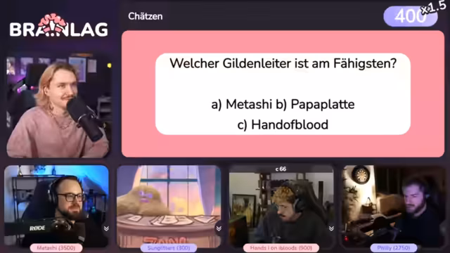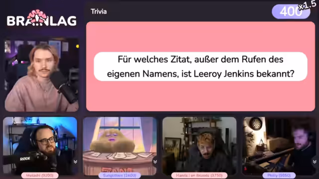 02:48:11Bei einer interaktiven Frage müssen die Teilnehmer vorhersagen, welcher Spieler ('Chef Strobl', 'NoWay', 'Mauki' oder 'Nagura') während eines Events am häufigsten sterben wird. Der Twitch-Chat stimmt ab, und die Teilnehmer müssen sowohl die richtige Antwort als auch die prozentuale Verteilung der Chat-Votes erraten. Die Mehrheit tippt auf 'Chef Strobl', was sich als korrekt herausstellt. Diskussionen über die Toxizität des Chats und die Spielweise der genannten Streamer begleiten diese Runde.