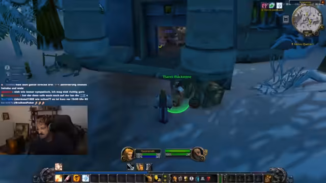 05:39:16Nach der Preisverteilung dankt der Streamer dem Organisator Flo für das funktionale Quiz. Er erwähnt die langen Spielzeiten der Teilnehmer, auch eigene, und scherzt darüber, wie viel Lebenszeit man in WoW verbringen kann. Danach wird ein technisches Problem mit einer Streaming-Lampe angesprochen. Der Stream geht über in die eigentliche Haupttätigkeit des Abends: das Coachen von Donnie.