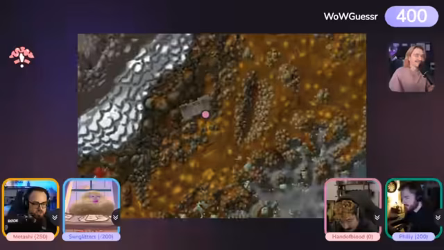 03:50:11Eine intensive Runde Geo-Guesser beginnt, bei der die Teilnehmer eine ungewöhnliche, unterirdische Kartenansicht identifizieren müssen. Nach mehreren falschen Vermutungen wie Mount Hyjal wird schließlich der korrekte Ort als der Eingang zu Blackrock Mountain in Blackrock Depths bekannt gegeben. Metashi gewinnt diese Runde und erhält 400 Punkte. Anschließend wird eine neue, knifflige Frage zum Namen der Gladiatorenhälfte von König Varian Wrynn nach seiner Trennung durch Onyxia gestellt, die von niemandem korrekt beantwortet wird.