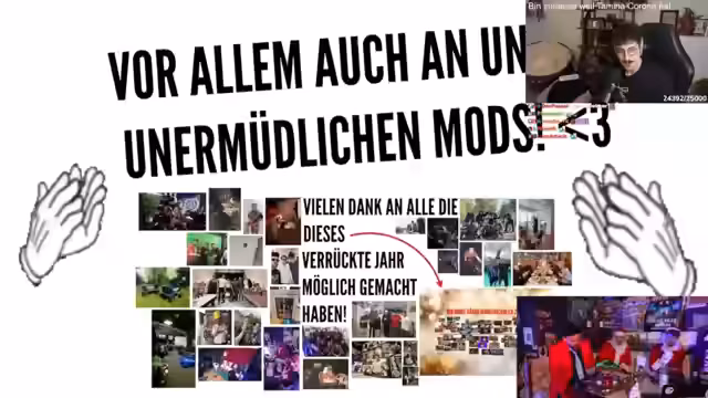 04:18:13Ein persönlicher und emotionaler Moment ist die Wertschätzung, die der Streamer seinem Kollegen Max für das vergangene Jahr entgegenbringt. Er lobt dessen hervorragenden Einstieg auf Twitch, den einzigartigen Content und das immense Engagement des Teams im Hintergrund, das für Quantität und Originalität sorgt. Auch auf menschlicher Ebene bedankt er sich bei Max, der ihm viele Thesen bestätigt und ihm 'einen Ruck in die richtige Richtung' gegeben habe. Der Dank galt auch den unermüdlichen Mods, die durch ihren Einsatz lange Streams und kurzfristige Änderungen überhaupt erst möglich machen.