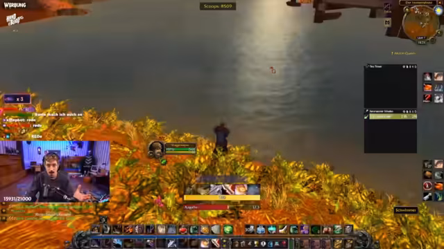 03:01:30Der Streamer muss den Angelskill drastisch auf 150 steigern, um einen seltenen Fisch zu fangen. Die Community gibt ihm Tipps, welche Fischstellen und Angelarten am besten geeignet sind. Er erfährt, dass bessere Angelgeräte wie die große Eisenangel in Desolace oder die Arcanitangel durch Angelwettbewerbe im Schlingdorntal erhältlich sind. Währenddessen klärt er auf, dass Gerüchte um ein Knabe-Schmalz ein Gag waren.