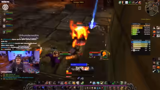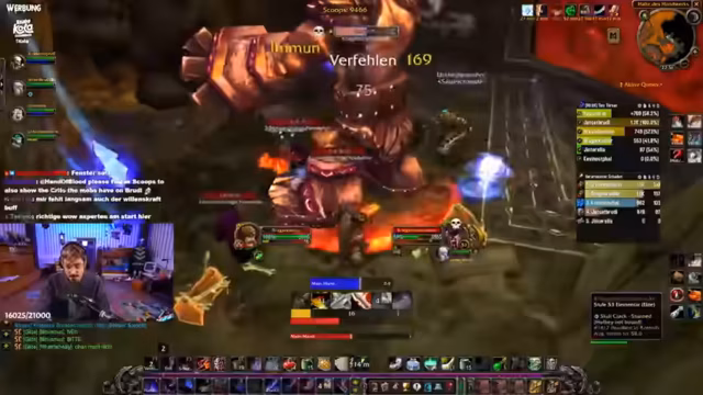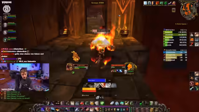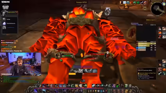 07:38:31Der Trash-Kampf wird zunehmend intensiv und entspannend, als sich die Umgebung mit Brandwachen und Elementaren füllt. Der Streamer beschreibt die Szene als dramatisch, ähnlich einer Szene aus 'Herr der Ringe'. Die Gruppe muss mehrere Adds gleichzeitig bekämpfen, wobei Koordination und der gezielte Einsatz von Fähigkeiten wie Klingenwirbel und Blizzard entscheidend sind. Die Stimmung angespannt, aber der Streamer bleibt gelassen und gibt klare Anweisungen, um die Adds zu kontrollieren.
