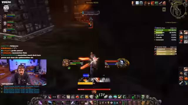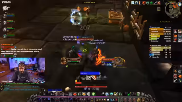 09:29:35Nach einer kurzen Pause zieht es die Gruppe in einen Dungeon, wo sie einen Bosskampf beginnt. Trotz guter Vorbereitung erleidet die Gruppe einen Verlust. Während des Kampfes kommt es zu Koordinationsproblemen, was zu Verwirrung und Frust führt. Es werden Fehler im Spielverhalten kritisiert, insbesondere im Hinblick auf den Tank, der scheinbar nicht ganz aufmerksam war. Der Streamer ist vom Spielverhalten der Gruppe sichtlich genervt und wünscht sich mehr Konzentration.