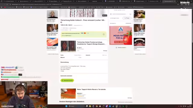01:05:11Nach der Entscheidung über die Möbelkonfiguration konzentriert sich der Streamer auf die Dekoration des Studios. Es werden Pläne für eine Tapeteierung der Wände mit Postern aus den Nullerjahren und der Kauf von Dr. Sommer-Bravo-Postern besprochen. Um das Jugendheim-Flair zu verstärken, wird gezielt auf Discord nach Kleinanzeigen für gebrauchte Perlenvorhänge gesucht, da neue Modelle zu teuer sind. Der Prozess der Suche und die beschlossenen Ankäufe werden im Stream gezeigt.