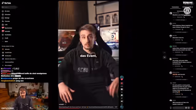 01:25:11Der Streamer informiert über die bevorstehenden E-Sport-Events für Eintracht Spandau im Comedy Central Winter Showdown. Dazu gehören Spiele gegen Teams wie Unicorns, Kaufland, Tog und AOMA am Mittwoch und Freitag. Anschließend werden zwei humorvolle TikToks von Profi-Spielern gezeigt und analysiert. Der Höhepunkt ist das Ansehen von Bewerbungen für die Sauercrowd-Gilde. Die erste Bewerbung fällt durch ihr packendes Intro auf.