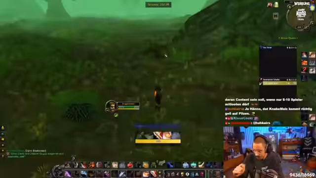 02:10:02Neben der Theorie wird auch praktisches WoW-Gezeigte. Der Streamer führt Quests im Teufelswald durch, bei denen er besudelte Pflanzen heilen muss, um seine 'szenarische Pflanzensalbe' herzustellen. Diese Sammel-Aktivitäten sind notwendig, um sich für den World Buff vorzubereiten. Die Chat-Kommunikation und die Planung der nächsten Schritte sind dabei zentral.