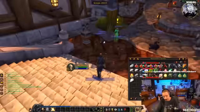 05:18:27Der Streamer bereitet sich technisch auf den Stream vor und spricht über Probleme mit seinem Stream Deck und der Software. Er erwähnt, dass er noch nach Kräutern sucht, für die er Grompsblut und Geisterpilze benötigt. Auch wird das Thema World Buffs ausführlich besprochen. Der Streamer erklärt, wie man die DM-Buffs holt und wieder einpackt, und erwähnt, dass Hexenmeister mit Teleport-Fähigkeit sehr hilfreich sind.