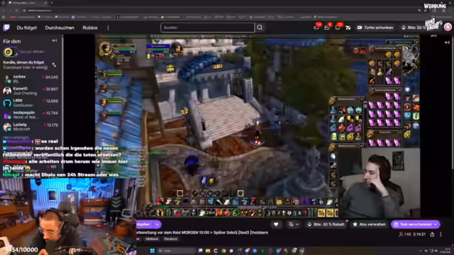 07:16:42Es gibt eine deutliche Verzögerung bei der Vorbereitung des Molten Core Raids. Der Streamer adressiert das Fehlen von Schlüsselrollen wie Heiler und Tanks und bemängelt, dass einige Gildenmitglieder, obwohl für den Raid ernannt, sich nicht mehr eingeloggt haben. Trotz intensiver Farming-Aktivitäten in den Tagen zuvor, einschließlich Dungeons und Farm-Sessions, fehlt es nun an der personellen Stabilität. Der Streamer betont seinen eigenen Einsatz und seine Bereitschaft, als Lufttank zu agieren, um die Gilde zu unterstützen, und stellt die Motivation der Teilnehmer infrage.