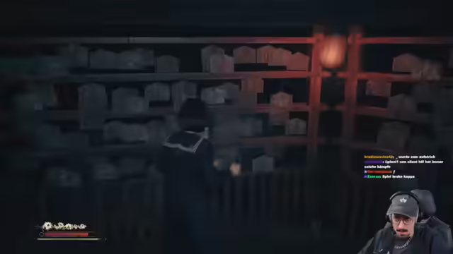 05:45:11Zunächst wird ein Fokusproblem im Spiel festgestellt, während die Spielfigur Sibylle und Frederike interagiert. Es folgen humorvolle Kommentare und Verwirrung über den Namen einer Spielfigur. Anschließend wird die Boss-Arena erkundet und ein Gedicht gefunden, das sich als Rätsel entpuppt. Es wird ein Fächer entdeckt, der ein Knotenrätsel enthält, das jedoch leichter zu lösen ist als erwartet. Nach dem Lösen des Rätsels wird ein Bosskampf erwartet, aber stattdessen werden die Charaktere vergast und verlieren Sanity. Ein verschlossener Raum zwingt die Spielfigur Akko zur Ruhe, bevor er sich öffnet und eine Begegnung mit einer anderen Figur namens 'halber Furry' stattfindet. Es folgt ein Laternenumzug, bei dem ein Messer gefunden wird, dessen Klinge als zu lang für den legalen Gebrauch eingestuft wird, aber für rituelle Zwecke geeignet ist. Der Gedanke, mit diesem Messer eine Stulle zu schmieren, wird als reizvoll empfunden.