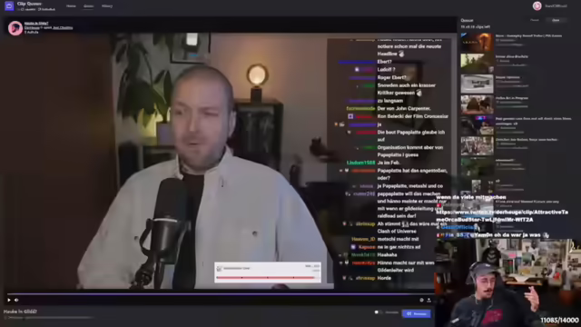 00:43:59Der Streamer plant, Kettensägen in einem Spiel auszuprobieren und äußert sich zu 'Dark and Darker'. Er zeigt sich überrascht über den Schaden, den er beim Räuchern erleidet und fragt sich, woran er gestorben ist. Er vermutet einen Blitzzauber und realisiert dann, dass es sich um Sauerstoffmangel handelt. Es wird über eine Hardcore-WOW-Gilde gesprochen, die Guru-Braden gründen wollen. Der Streamer hat gehört, dass Metashi Raid-Lied machen soll und bereits dabei ist. Er äußert sich zu Metashis Raider-Qualitäten und vermutet, dass er sich eher von Community-Schwitzern durchziehen lässt. Er überlegt, Mitashi zu schreiben und bei der Gilde mitzumachen. Es wird diskutiert, ob Allianz oder Horde gespielt werden soll. Der Streamer erinnert sich an ein Gespräch mit Kevin, der seine anfängliche Aussage, nur als Gildenleiter und Raidlead mitzumachen, ernst genommen hat. Er betont, dass er es nicht full on ernst meinte und entschuldigt sich für den Trash-Talk.