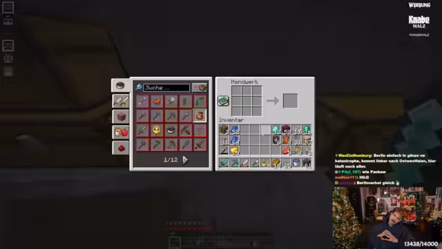 00:24:03Es geht nun um die Minecraft-Welt FitnaCraft. Der Streamer reflektiert über ineffektive Grind-Sessions und erwähnt ein wichtiges Learning: Für die Netherite-Farm sind die Verzauberungen Efficiency, Haltbarkeit 3 und Repair unerlässlich. Es folgt die Auseinandersetzung mit Ali Boumaier, der auf dem Server Mitspieler mit dem Satz '5 Diamanten am Tag' erpresst und dabei eine humorvolle, aber scharfe Rolle als 'Schutzgelderpreßer' einnimmt.