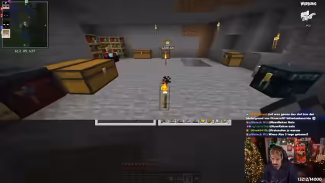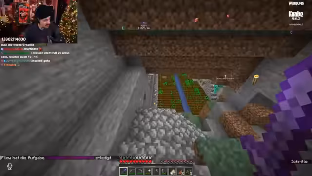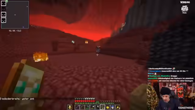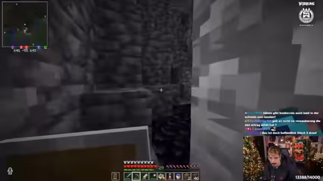 02:22:31Der Streamer zeigt seine Minecraft-Welt mit einem Villager-Breeder und einer Trading Hall, die als beste auf dem Server gilt. Er erklärt eine Bambusfarm, die durch Observer und Pistons arbeitet, aber nur funktioniert, wenn Chunks geladen sind. Nachdem er 72 Ancient Debris gefarmt hat, plant er Netherite-Rüstungen zu enchanten und diskutiert Strategien für den Diamanten-Abbau. Er erwähnt auch einen Panda-Einfang und Fehler beim Farmen mit unoptimiertem Gear.