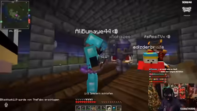 00:22:21Kritik am Mangel an Kreativität auf dem Server: Statt Bauprojekten dominiert PvP. Der Streamer fordert 'Momente' wie ein Konzert von Ali Boumaier im Minecraft. Dies führt zu hitzigen Diskussionen über Server-Dynamiken, wobei Mali und andere Spieler für mehr friedliche Aktivitäten plädieren. Humorvolle Konflikte um 'feuchte Banditen' und Rollenspiel-Ideen entstehen.