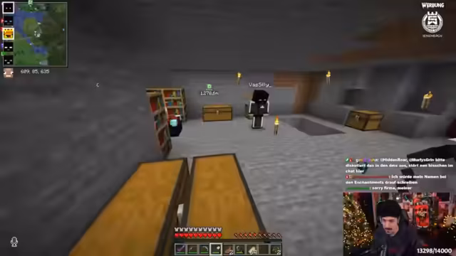 04:49:33Die Spieler tauschen sich über ihre Minecraft-Projekte aus, darunter Villager-Checks und das Bauen von Strukturen. Sie loben die Leistungen von Teammitgliedern, die nachts gefarmt haben, und kritisieren gleichzeitig Fehler, wie den Verlust von Ausrüstung durch Lava. Enthusiasmus wird durch emotionale Reaktionen wie Gänsehaut und Ausrufe wie 'krass' und 'geil' deutlich. Es gibt Planungen für zukünftige Aktionen, etwa Raids oder Farmen, und die Gruppe stimmt darin überein, ihre Kräfte zu bündeln, um effizienter zu sein.