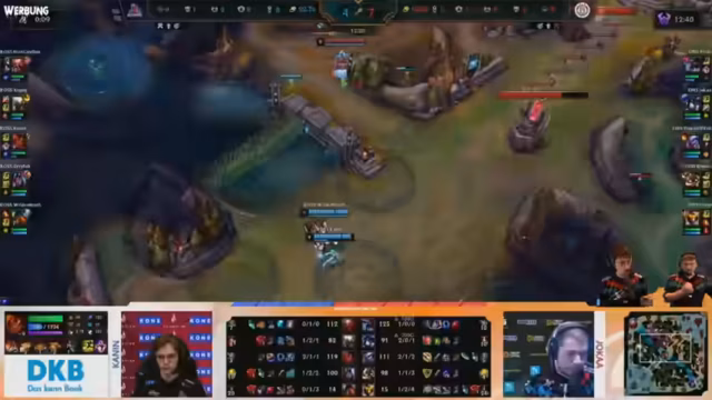 04:47:04In der 23. Minute wird erwartet, dass Rossmann den Goldvorteil verliert, andernfalls würde sich die Situation umkehren. Das Team versucht, antizyklisch einen Win zu erzwingen. Die Gegner haben sich Guardian Angel gesichert, was Teamfights erschwert. Das Team hat eine schlechtere Ausgangslage, da eigene Türme gefallen sind, während die des Gegners noch stehen. Brücki ist weiterhin stark involviert, und das Team sucht nach einem guten Nocturne-Kamill-Engage. Ein gegnerischer Atakan wird ausgeschaltet, aber die Gegner contesten den Baron. Der Teamkampf ist gesplittet, und Brücki gerät in Bedrängnis. Der Baron wird verhindert, aber Brügel kassiert viel Schaden. Joka erhält ebenfalls viel Schaden von der Rise-Ult. Pride verursacht zwar Schaden, aber nur mit einer einzigen Fähigkeit und Autotech-Animation. Das Team holt sich noch die Sehner, aber es wird zunehmend schwieriger. Trotz starker Momente reicht es nicht aus, das Spiel zu gewinnen. Es wird überlegt, in eine Helms-Klamm-Formation zu rücken, um die Basis zu verteidigen.