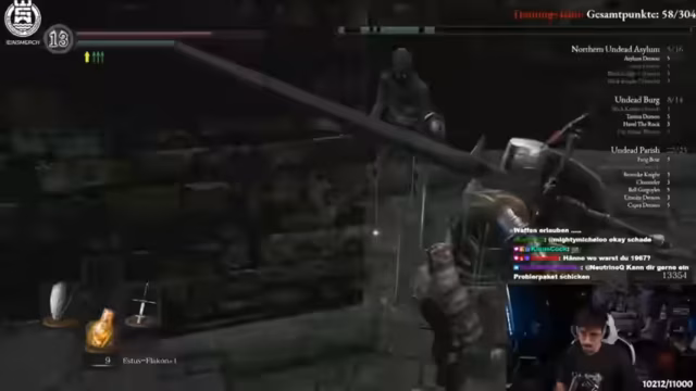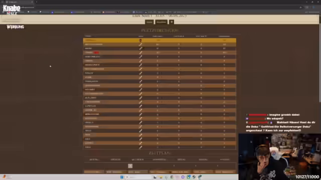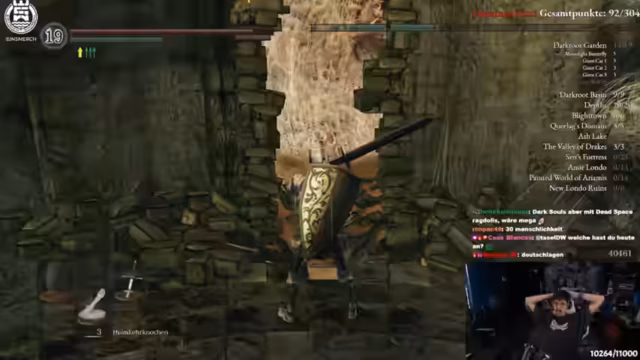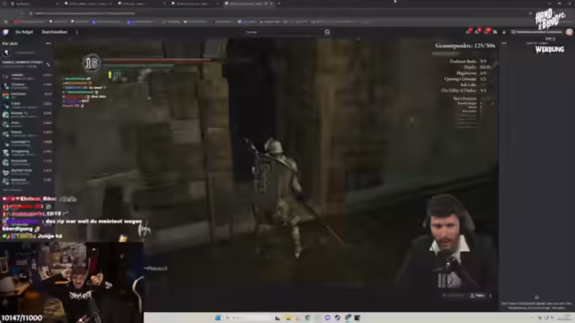 02:38:05Während der Live-Übertragung werden unzählige Highlights und bemerkenswerte Momente des Soulkeepers-Runs geteilt. Ein Teilnehmer hat einen äußerst nervenaufreibenden und fehlerhaften Run absolviert, der den Streamer fasziniert. Es werden spezifische Tode wie beim Eisengolem und unkonventionelle Taktiken angesprochen. Die Atmosphäre ist geprägt von Spannung und Humor, während der Streamer die Entwicklungen im Live-Feed kommentiert und die Reaktionen des Chat auf die spektakulären Missgeschicke mitverfolgt.