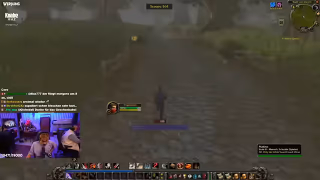 08:46:38Um das Leveling fortzusetzen, plant der Streamer, mit seiner Gruppe das Gebiet Rotkammgebirge zu erkunden, um dort neue Quests zu starten und Flugpunkte zu sichern. Gleichzeitig arbeitet er an der Optimierung seines Interface, indem er Makros erstellt, um seine Fähigkeiten wie Finsterer Stoß und Kopfnuss effizienter zu bündeln und im Kampf schneller agieren zu können.
