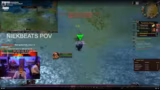 16:03:10Es wird ein praktischer WoW-Trick gezeigt, um ohne Tauchen an Schatztruhen in versunkenen Schiffen zu gelangen. Erklärt wird die Funktionsweise der Interaktionstaste, die man in den Optionen aktivieren muss. Parallel dazu läuft ein Rap-Battle im Chat, bei dem der Streamer verschiedene Lieder wie 'Man's Not Hot' und 'Rücken an der Wand' anfragt und teilweise selbst singt.
