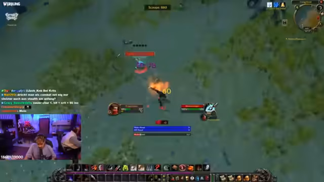 05:32:01Der Streamer bietet einem anderen Spieler technische Hilfe an. Er erklärt schrittweise, wie man ein Deathlog-Addon konfiguriert, um störende Todesbenachrichtigungen auf der Minimap zu deaktivieren. Gleichzeitig wird über Echo-Probleme bei der Sprachkommunikation gesprochen und die Ursache gesucht. Der Fokus liegt auf der Lösung technischer Hürden, um ein reibungsloses Spielerlebnis zu gewährleisten, während die Grind-Aktivitäten in Westfall weiterlaufen.