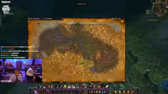 15:36:19Es wird der erste eigene WoW-Charakter als Ork-Hexenmeister erwähnt und der Plan zum Pushen auf Level 20 diskutiert, wobei der Streamer betont, nur wegen seines Sohns zu spielen. Interaktionen mit der Gilde werden thematisiert, insbesondere die Suche nach einem Hexenmeister für die Succubus in Goldheim. Das Angel-Skillen wird als EP-Quelle genutzt, während über seltene Mobs und Viewer-Interaktionen wie Auspeitschen im RP gesprochen wird. Eine Ingame-Nachricht von Klaus zum Auktionshaus wird als 'easy' beschrieben, und es folgt eine Diskussion über die Langlebigkeit von Charakteren im Hardcore-Modus.