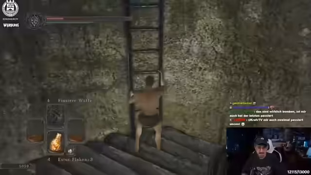 04:03:14Nach dem Bosskampf kehrt der Streamer zur Haupthandlung zurück, um alte Fürsten zu töten und Drangleic Castle zu betreten. Er sammelt weiterhin wichtige Gegenstände wie den Chlorantiering und plant, die Pate-Quest abzuschließen, um kritische Chance zu erhöhen. Der Stream betont die Herausforderungen, seinen Schaden zu maximieren und gleichzeitig überleben zu müssen.