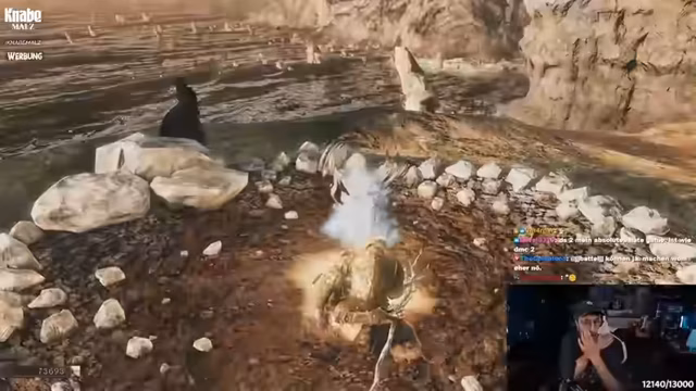 04:44:16Nachdem der Streamer Tränke aufgefüllt hat, beginnt er mit einem Sniper-Einsatz mit Blitzpfeilen, die unendliche Reichweite haben. Er entscheidet sich, alle Gegner einzeln zu pullen, um eine Übermacht zu vermeiden, und nutzt dabei eine Kombination aus Bogen und Nahkampfwaffen. Besonders kritisch wird ein Bosskampf mit einem Frosch, der eine seltene Kombo hat, die den Spieler löschen kann, wenn man zu nah dran ist. Der Bereich mit den Buckel-Gegnern wird als eklig und maßlos ehrenlos beschrieben.
