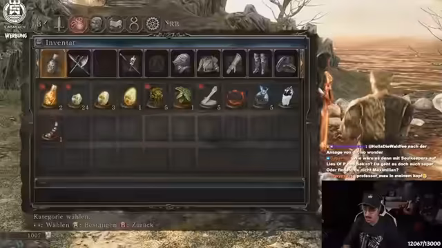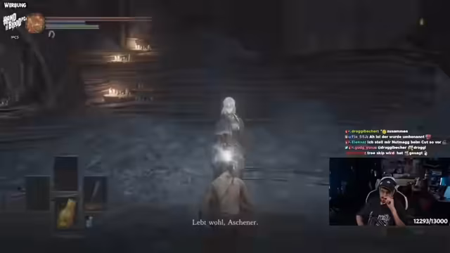 01:03:10Nach einer intensiven Vorbereitung beginnt der eigentliche Redemption Run. Der Streamer erklärt seine Strategie: Er nutzt das „Asketenleuchtfeuer“, um Bereiche direkt in den New Game Plus Modus zu versetzen. Ziel ist es, dreimal den Boss „Verfallener König“ und einmal „Sünder“ zu besiegen. Dies stellt eine Abweichung von einem normalen Speedrun dar, ist aber für sein Ziel des fehlerlosen Durchspielens sinnvoller. Er startet in Majula, holt sich wichtige Ausrüstung und stellt fest, dass sein Controller immer wieder disconnectet, was für zusätzliche Spannung sorgt.