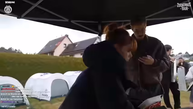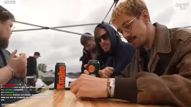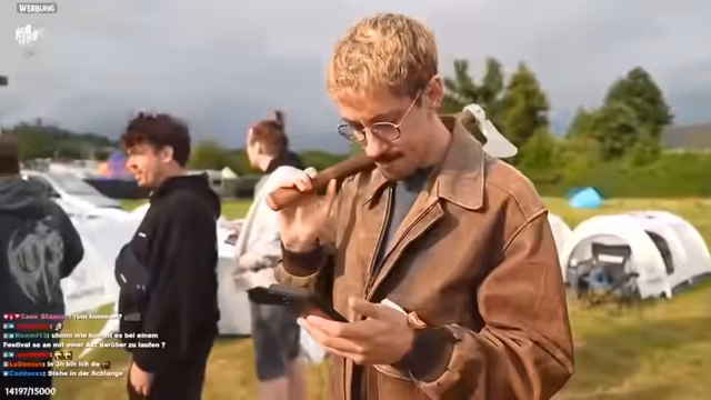 09:39:35Ein Höhepunkt des Streams ist der unerwartete und enthusiastische Besuch von Schalke-Lennart, einem bekannten Streamer und Fußballfan. Der Moment ist von großer Freude und Anerkennung geprägt, und es kommt zu einem emotionalen Wiedersehen. Dieser Besuch fungiert als sozialer Ankerpunkt und bringt eine dynamische, persönliche Note in den ansonsten eher alltäglichen Festivalablauf.