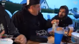 03:54:19Die Streamer unterhalten sich über die unangenehmen Seiten des Festivalbesuchs, insbesondere die sanitären Anlagen. Es werden wilde Anekdoten über sogenannte 'braune Küsse', also das versehentliche Bespritzen durch andere, und das Umschubsen von Dixi-Klos geteilt. Die Gespräche sind von einem unkonventionellen, oft groben Humor geprägt und behandeln die ungeschönten Realitäten des Campinglebens auf Festivals mit einer Mischung aus Abscheu und Amüsement.