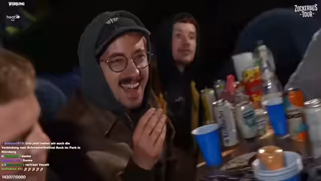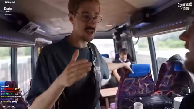 00:00:00Der dritte Tag der Zockerbus-Tour beginnt mit der Ankündigung des Reiseziels: dem Festivalgelände von Rock am Ring. Streamer Kalle Kuschinski begrüßt das Team, bestehend aus Kutschalol, Hand of Blood und neu hinzugekommenem Knirps. Er gibt einen humorvollen Rückblick auf die bisherigen Erlebnisse, darunter ein Ritterturnier in Rüstung und einen Zwischenfall mit einem kaputten Bus, der zu einer vierstündigen Verspätung führte, was jedoch als Teil des Abenteuers dargestellt wird.