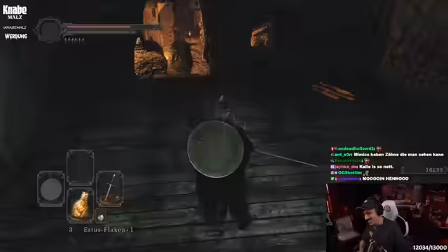 03:02:34Das Hafengebiet erweist sich als labyrinthartig und oft verwirrend. Der Streamer erforscht die verschiedenen Pfade und kämpft gegen Piraten und ihre spezifischen Attacken. Eine besondere Mechanik ist die Bedeutung von Licht im Spiel, das das Verhalten der Gegner beeinflusst. Dabei werden Fackeln entzündet und die Auswirkungen auf das Gameplay getestet. Diese Entdeckungen zeigen die Komplexität der Level-Designs in Dark Souls 2.