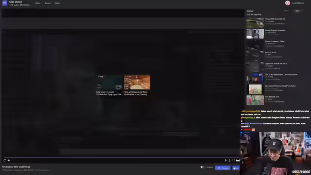 00:05:25Nach den technischen Problemen startet der Bereich 'TikTok des Tages'. Es werden humoristische Clips gezeigt, unter anderem mit einem Nutzer, der versucht, eine Statue des Satans mit acht Armen zu 'urgn'. Anschließend wird die Clip-Queue für Zuschauer geöffnet. Im Anschluss wird das Spiel 'Deadly Days' erwähnt, in dem ein Kollege namens Vasily einen 'Hype Train' ausgelöst hat.