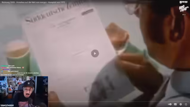 00:56:04Die Hauptaktivität des Streams ist die Reaktion auf die ZDF-Doku von 1972, 'Wie wir uns 2000 vorgestellt haben'. Die Vorstellungen wie 25-Stunden-Arbeitswoche, Teleshopping, Smart Home ohne Internet und Mikrowellen-Frühstück werden humoristisch kommentiert. Die Moderatoren sehen teilweise erstaunlich treffsichere Prognosen wie Carsharing und zunehmende soziale Isolation durch Technologie, verpassen aber die Digitalisierung.