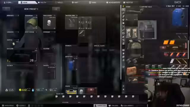03:39:59Nach erfolgreicher Extraction wird mit dem Verkaufen von Loot begonnen. Der Fokus liegt auf dem Management von Inventarplatz und der Aufbewahrung von Items für Quests. Es wird erklärt, dass wertvolle Heilgegenstände wie der Grizzly in Hose oder Rig transportiert werden sollten, um sie per Quick-Use jederzeit verfügbar zu haben, obwohl man sie bei Extraction verliert. Die Mission für die Therapist wird gestartet: Die Emakom-Station auf Ground Zero muss lokalisiert werden. Dazu wird Geld mitgenommen und die Ausrüstung optimiert, bevor die Gruppe die neue Karte betritt.