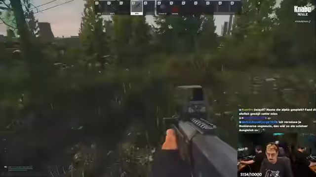 06:51:51Das Gameplay beginnt mit vorsichtigen Bewegungen und taktischem Warten auf der Map. Streamer Kalle und Vasily planen einen gezielten Angriff, um gegnerische Scav-Spieler auszuschalten. Sie nutzen den Umgebungslärm, wie z.B. das Geräusch eines vorbeifahrenden Busses, um ihre Positionen zu verschleiern. Obwohl sie einige Gelegenheiten zum Ausspähen erkennen, gerät das Vorhaben ins Stocken, als Vasily versehentlich einen lauten Schritt macht und dadurch eine Position preisgibt, die zu einem Angriff führt. Der Vorfall verdeutlicht die Wichtigkeit des ruhigen Vorgehens in dem Spiel.