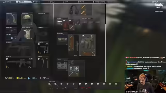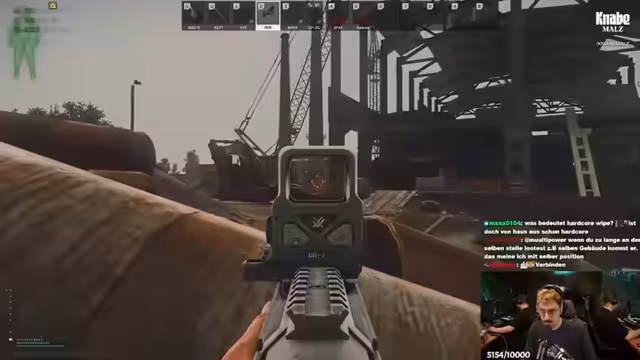 00:00:00Der Stream beginnt mit technischen Vorbereitungen und dem Eintreten der Streamer in das Spiel. Es gibt Probleme mit dem Steam Deck, das ständig abzustürzen scheint. Die Streamer kommentieren dies und versuchen, die Ursache zu finden, die aber nicht am PC liegt. Gleichzeitig werden erste Pläne für den Tag besprochen, wie das Erledigen von Quests auf verschiedenen Karten und die Jagd auf besondere NPC-Gegner, die sogenannten Raider. Die Streams beginnen damit, die grundlegenden Mechaniken des Spiels zu erklären, wie das Looten von Items und das Wichtigkeit von Quests, um bei Händlern Zugang zu essenziellen Ausrüstung zu erhalten.
