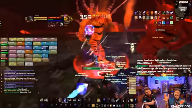 08:13:08Es kommt innerhalb der Gilde zu einer Spannung zwischen dem Streamer und einem Gildenmitglied namens Jamon. Der Streamer beschwert sich über Jomon mangelnde Moderation im Chat und entlässt ihn aus der Rolle. Ein anderer Gildenmitglied, Heno, verteidigt Jamon, was zu einem weiteren Streit führt, in dem der Streamer seine Autorität als Gildenmeister unter Beweis stellt. Trotz der angespannten Situation blicken die Mitglieder bereits auf zukünftige Pläne wie einen geplanten 'Türken-Raid'.