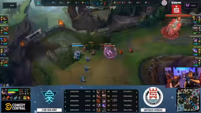 06:35:43Das Spiel verläuft zunächst positiv mit Vorteilen auf mehreren Lanes und erfolgreichen Engages. Ein entscheidender Fehler führt jedoch zu einem Verlust: Der nicht berücksichtigte verstärkte Teleport (Homeguards + Quest) von Thalia, der überraschend eingreift. Später wird ein strategischer Fehler bei einem Drachen-Play gemacht, als das Team gleichzeitig auf der Bot- und Top-Seite spielt und so den gegnerischen Jungler nicht richtig trackt. Dies führt zu unnötigen Verlusten. Ein weiteres fehlerhaftes Play am Baron-Buff gibt Aoma eine Chance zum Comeback, während der gegnerische ADC Tristan Schrage auf 8-1 anwächst.