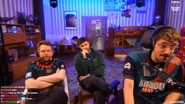 08:42:59Ein unerwarteter gesellschaftlicher Kommentar im Chat löst eine Reaktion des Streamers aus. Ein Chatter führt Deutschland und das aktuelle Gefühl der Gesellschaft an, was den Streamer zu einer untypischen, ernsten Reaktion veranlasst. Er verteidigt seinen Mentor, der zuvor Anleitungen gegeben hat, und kritisiert den 'Stammtisch-Talk' im Chat. Er deutet an, dass der Chat manchmal Themen anspricht, die den Fokus vom Gameplay ablenken und nicht erwünscht sind.