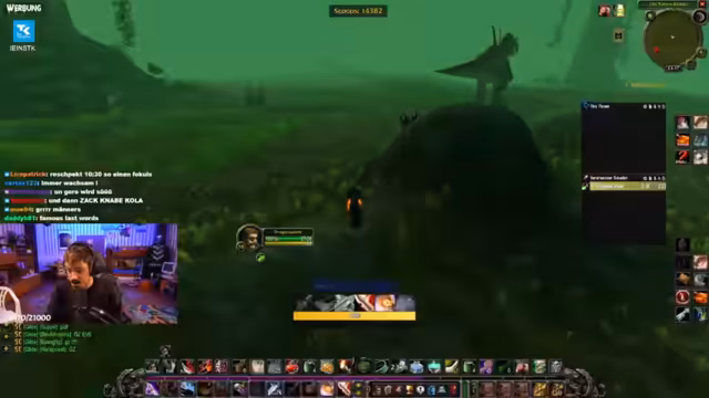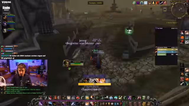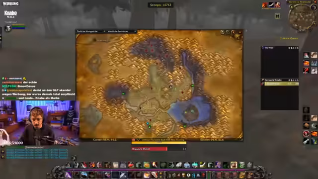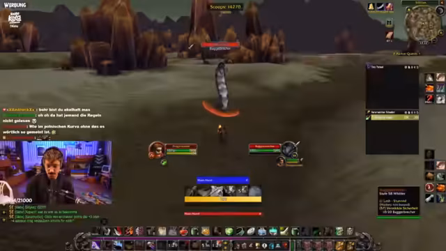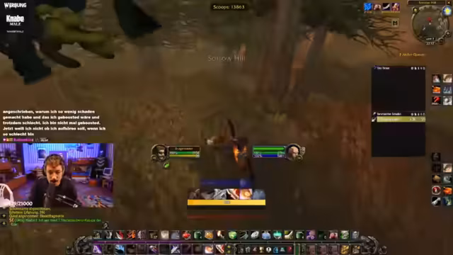 09:24:07Der Streamer berichtet über seine Fortschritte im Spiel, insbesondere im Gebiet Silithus. Er hatte Glück mit dem Drop eines Items und stellt fest, dass die Scorps, die ihn zuvor vergiftet haben, dies nicht mehr tun. Er erwähnt auch das Erledigen von Hogger. Allerdings zeigt er sich frustriert über einen Boss namens Ilkrut Maktrull, den er zweimal getötet hat, ohne das gewünsste Item zu erhalten, und über einen verpatzten Questfortschritt, der ihn länger aufhält.