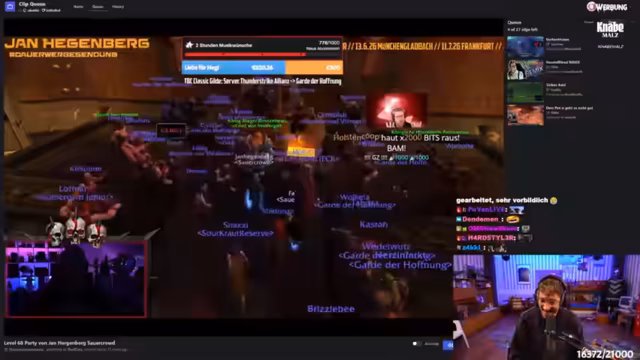 02:49:14Das Fehlen von Heilern führte zu einem chaotischen Versuch, Kevin durch Farmen von Trollhalsketten für Erfahrungspunkte zu leveln. Dabei kam es zu technischen Problemen und Unstimmigkeiten innerhalb der Gilde. Angesichts der Missstände verkündete der Streamer frustriert, dass er das Projekt eventuell einstellt und sich nach Erreichen von Level 60 nur noch auf Raids konzentrieren werde, was zu einer hitzigen Debatte mit dem Chat führte.
