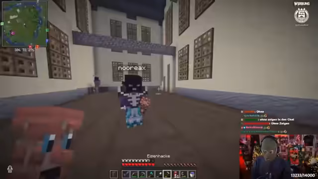 06:48:16Innerhalb der 'Osmanischen Reich'-Gruppierung bildet sich eine Fraktion, die sich 'Team Huck' nennt und eine Nationalhymne etabliert. Die Stimmung unter den 'Team Huck'-Mitgliedern wird zunehmend unruhig. Einige beschweren sich über fehlende Anerkennung und fühlen sich ausgeschlossen. Letztlich kommt es zu einem bewussten Verrat, als ein Member von 'Team Huck' ein Kebab-Event durch einen Creeper-Anschlag sabotiert und das Paktgebäude in die Luft jagt.