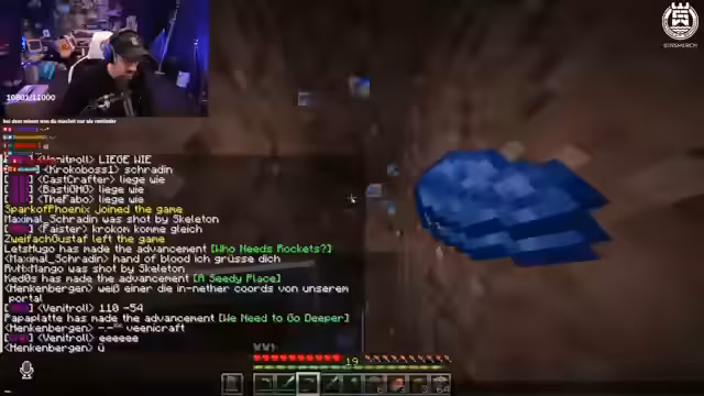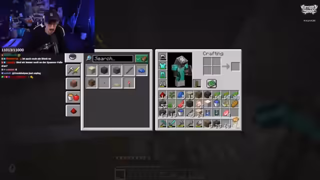 06:40:20Bei der Erkundung derMine stößt der Streamer auf zwei Zombie-Spawner nebeneinander, was als extrem glücklicher Fund gilt. Er plant nun, eine EP-Farm für diese Spawner zu bauen und sie mit der bereits vorhandenen Infrastruktur zu verbinden. Gleichzeitig bemerkt er, dass sein Mitspieler Koko in der Zwischenzeit schläft, während er selbst unter Tage hart arbeitet und weiter Ressourcen sammelt.