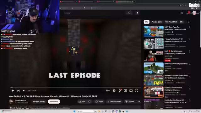 03:09:44Zu Beginn des Streams beschäftigt sich der Streamer mit dem Erkunden voninecraft-Ressourcen. Er stellt fest, dass Gunpowder in einer EP-Farm gewonnen werden kann, und erkundet verschiedene Möglichkeiten zur Erstellung einer solchen Farm. Der Streamer hat bereits Diamanten gefunden und plant, eine EP-Farm mit Spinnenspawnern zu bauen, da diese mehr EP geben. Er bittet den Chat um Hilfe und Videos zum Thema.