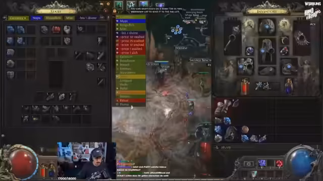 04:35:27Der Streamer beschäftigt sich intensiv mit dem Handel. Er nutzt das Pre-Checker Tool, um Itempreise zu bewerten, handelt um Orb of Alchemy, Mon-Voison-Witch und Exalted Orbs. Gleichzeitig ärgert er sich über eine kaufschwache Community und den starken Preisdruck auf dem Markt.