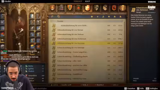 05:09:30Der Streamer sucht den Meister-Schmied Vetter auf, um ein seltenes Artefakt, das Herz der Uhr, zu erwerben. Vetter bietet nur Reparaturen und Pläne an, keine seltenen Gegenstände. Der Streamer kauft daraufhin alle verfügbaren Schmiedeanleitungen für Waffen, um seine Fähigkeiten zu verbessern und sich für das bevorstehende Turnier zu rüsten.