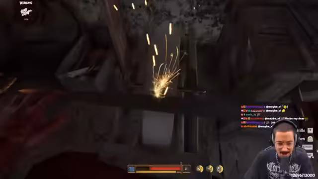 03:50:42Der Streamer gerät in ein lebensbedrohliches Szenario, in dem er in einen Backofen gesperrt wird und zu brennen beginnt. Er wird von einer Gestalt festgehalten, die ihn offenbar verbrennen will. Die Situation wird durch einen Kampf gegen einen Dämonen kompliziert, wobei der Streamer von einem Cliff springen und in einen Kerker katapultiert wird.