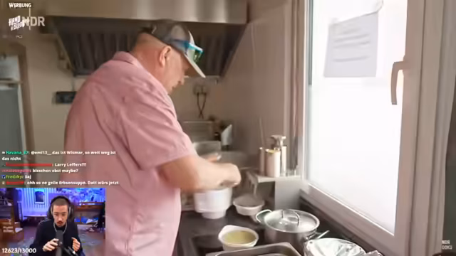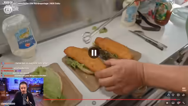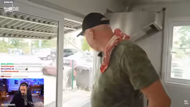 00:35:00Der Stream wechselt zu der Betrachtung von NDR-Dokumentationen, die von Zuschauern als Clips gesendet wurden. Zuerst wird eine Reportage über Larry, einen Imbissbetreiber auf einem Campingplatz, besprochen. Larrys Lebenslauf als 'Tausendsasser' wird ambivalent bewertet; sein Engagement für ein neues Geschäft im Bereich Hydroponik wird hingegen positiv als mutig und zukunftsorientiert angesehen. Eine weitere Doku über einen Eisfahrer auf der Insel Pellworm wird kurz als ruhig und interessant erwähnt.