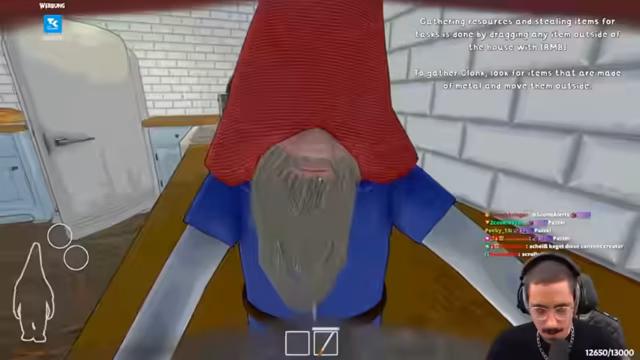 01:53:59Der Streamer startet eine gemeinsame Spielsitzung des Titels 'Burgling Gnomes'. Nach technischen Schwierigkeiten beim Verbinden der Teilnehmer gelingt es schließlich, die Lobby zu starten. Das Tutorial wird gemeinsam absolviert, bei dem die Spieler, als Gartenzwerge verkleidet, die Aufgabe haben, unerkannt in ein Haus einzudringen und Gegenstände zu stehlen, was zu chaotischen und humorvollen Situationen führt.