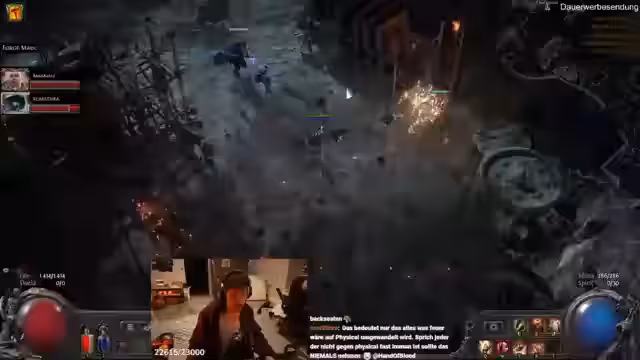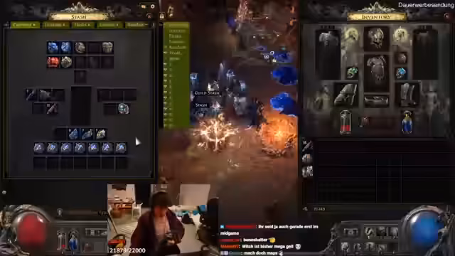 10:50:28Nach der Massage geht es direkt weiter mit dem Zocken von Path of Exile 2. Die Streamer sind müde aber motiviert, weiterzuspielen. Sie diskutieren über ihre Ausrüstung, Skills und ihren Build. Einer von ihnen hat eine gute Rüstung gefunden und teilt sie mit einem anderen. Sie müssen noch einige Quests und Bosse erledigen, die sie noch nicht abgeschlossen haben. Sie sind auch über die Atlas-Beute und die zu findenden Truhen gesprochen haben. Sie haben auch über die Items gesprochen, die sie gedroppt haben, und was sie damit machen sollen. Sie sind auch über ihre Builds gesprochen und wie sie ihre Skills verbessern können. Sie sind auch über die Map-Bosse gesprochen und wie sie diese besiegen können.
